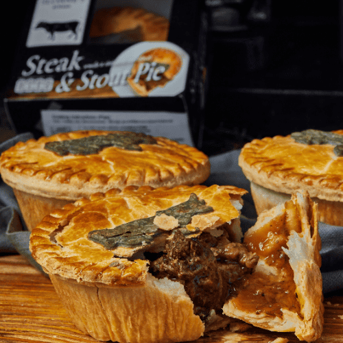 Dry-aged Wagyu beef braised in stout and packed into a butter short-crust pastry pie