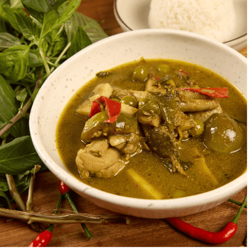 A traditional Gaeng Kiow Waan Gai made with Bo.lan's hand pounded curry paste and fresh coconut cream. Containing bone in chicken and chicken offal for a real green curry!
